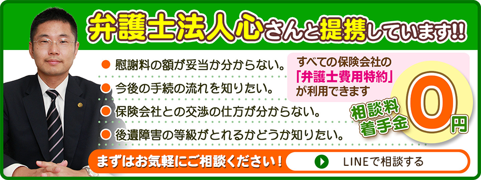 慰謝料や保険のこともサポートご不明な点があれば、お気軽にご相談ください。